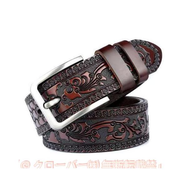 ベルト メンズ 本革 型押し 牛革 バックルベルト 革ベルト クローバー株式会社 レザー カービング ウエスト調整 ベルト ウエスタンベルト アメカジ
