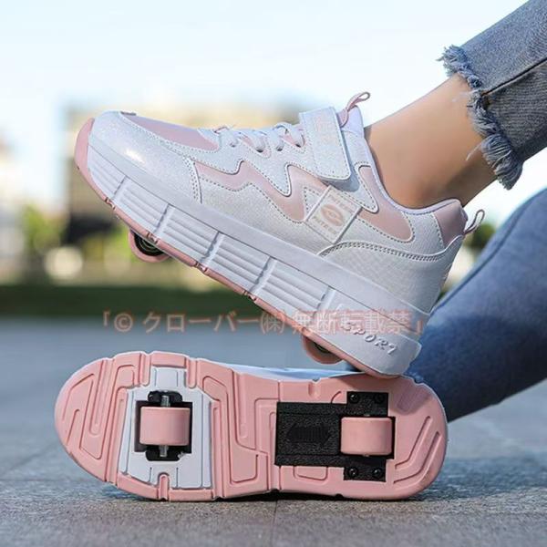 お洒落 キッズ 大人 ローラーシューズ 可愛 女の子 男の子 クローバー株式会社 高校生 前輪取り外し可能 後輪ワンボタン収納式 レデイーズ 2way 2輪タイプ 男女