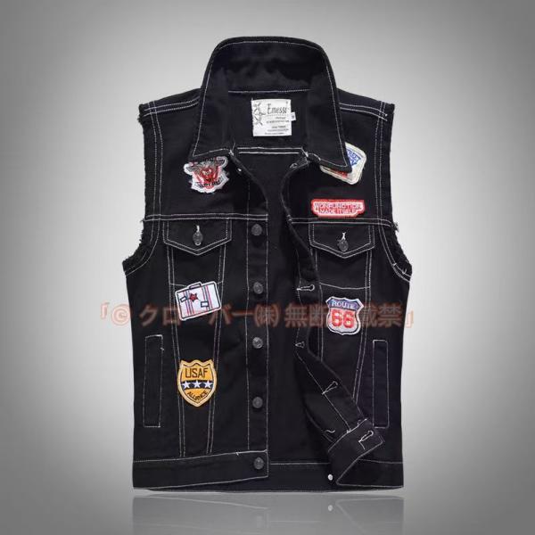 デニムベスト メンズ ワッペン付き ジレメンズ デニム チョッキ お兄系 クローバー株式会社 ダメージ加工 夏 ベスト 秋 大きいサイズ S-6XL