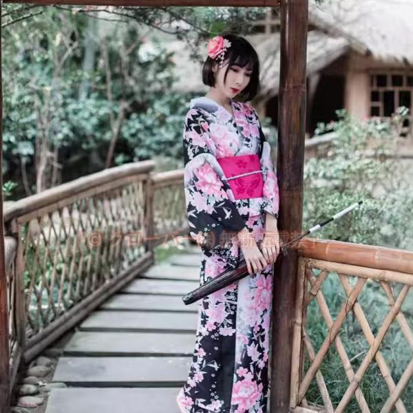 浴衣 セパレート 大人 浴衣 レディース セット セパレート クローバー株式会社 ワンピース 大人 黒 ピンク 浴衣セット 140 150 160 170 人気 レトロ 作り帯 浴衣 桜 百合 牡丹