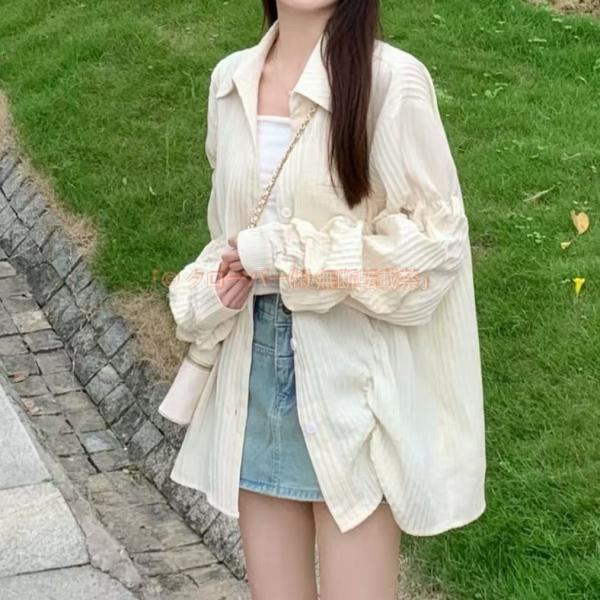 【半額セール】夏 韓国ブラウス UV 長袖 シアーシャツ レディース ブラウス クローバー株式会社 春 夏 涼やか カーディガン 薄手 トップス UV対策 羽織 日焼け対策