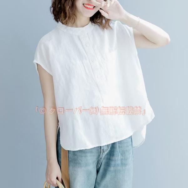 トップス ブラウス スタンドカラー バンドカラーシャツ レディース おしゃれ 韓国 クローバー株式会社 秋 カジュアル 半袖 白 かわいい リネン フォーマル 夏 半袖シャツ 通学通勤