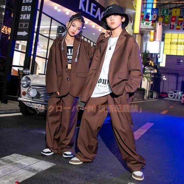 キッズ ダンス衣装 茶色 スーツ ヒップホップ セットアップ かっこいい クローバー株式会社 男の子 女の子 韓国 K-pop衣装 ジャズダンス かっこいい ジャケット パンツスーツ 卒業式