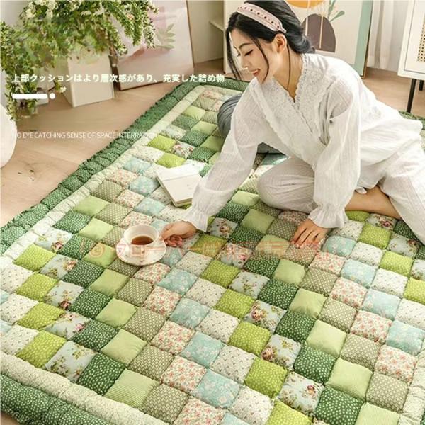 ラグ カーペット 北欧テイスト マット 夏ラグ ひんやり カフェ風 クローバー株式会社 オシャレ ヨガ ダンス 雰囲気 キルトラグ 綿 キルティング 冷感 新生活 折りたたみ可 軽量
