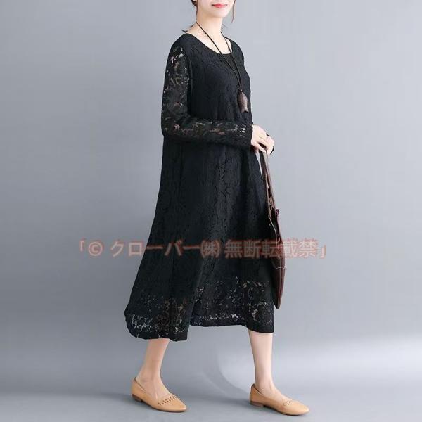 ワンピース 総レース レディース ロング 長袖 シースルー袖 結婚式 クローバー株式会社 二次会 20代 30代 40代 黒
