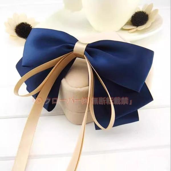 とても質感のある布材質の蝶結びと垂れる二重のリボンが華麗な女性の魅力を演出します。