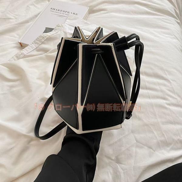 PUレザーバケツバック 六角形鞄2WAY 斜め掛け 肩掛けバッグ お洒落ハンドバッグ きれいめデザインバッグ コンパクト