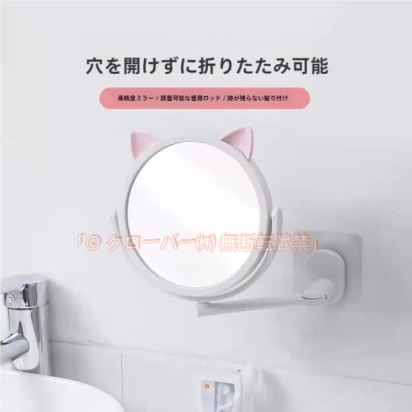 壁掛け鏡 ウォールミラー 可動式 折り畳み スイングミラー アームミラー ネコ クローバー株式会社 猫耳 丸型 ラウンド インテリア 収納 日用品雑貨 おしゃれ かわいい