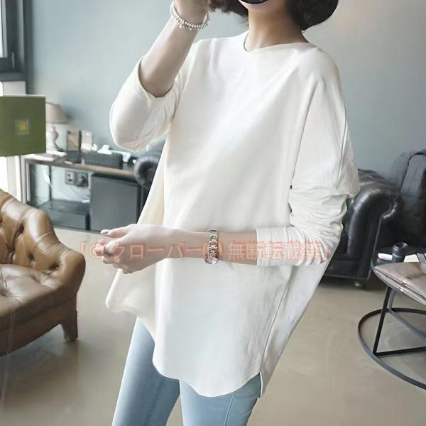 クルーネックカットソー トップス クルーネック ラウンドネック ラウンドカット トップス インナー カットソー ロング丈 tシャツ レディース カットソー ゆったり 体型カバー Tシャツ 長袖 ろんぐTシャツ ロングt 白 白Tシャツ 長袖tシャツ コットン 大きいサイズ ママTシャツ 春tシャツ おしゃれ