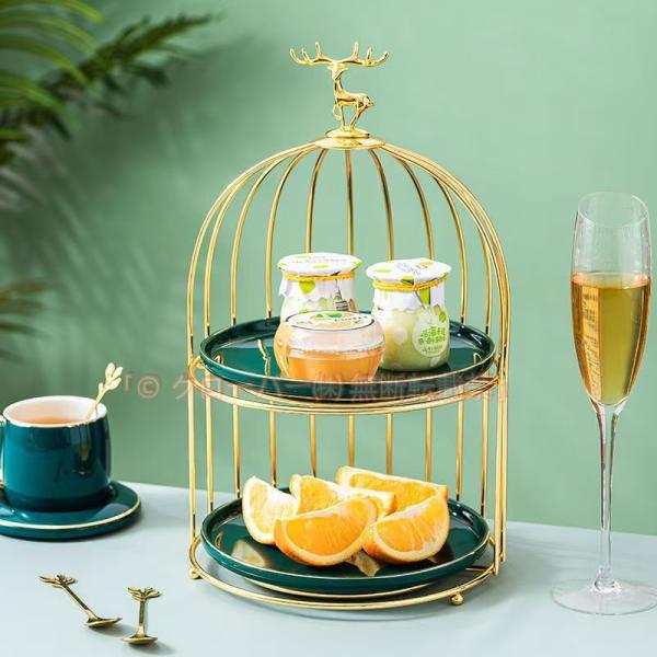 北欧ケーキ スタンド プレート2段セット アフタヌーンティー フルーツ鳥籠 トレー 皿 クローバー株式会社