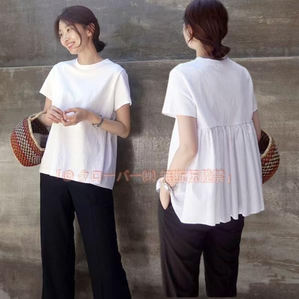 tシャツ半袖春 夏クルーネック 無地 ゆったり トップス カットソー uvカット クローバー株式会社 プルオーバー バックフレア フリル ギャザー ゆったり おしゃれ