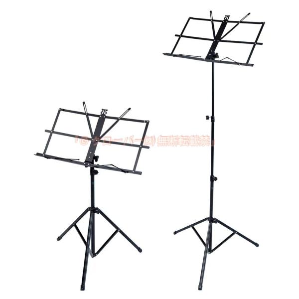 伸縮自在、高さ調整可能であらゆる楽器に使用可能な譜面台です。高さ調節ネジが支柱についています。ネジの調整で高さが変更できます。