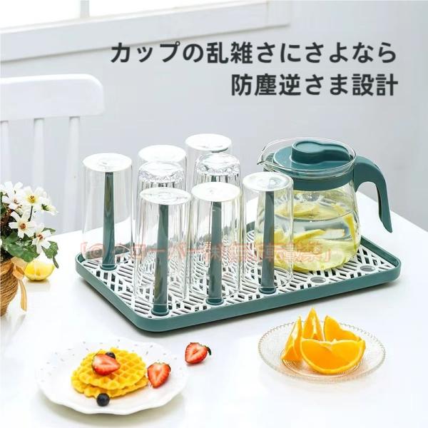 グラススタンド コップスタンド 水切り スタンド カップ収納 キッチン収納 ラックコップ 乾燥用 トレイ付き キッチン雑貨 キッチン収納 収納ラック