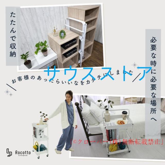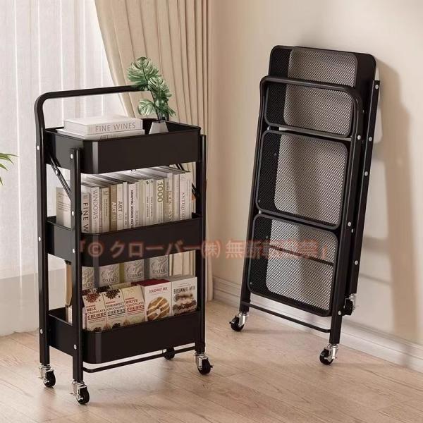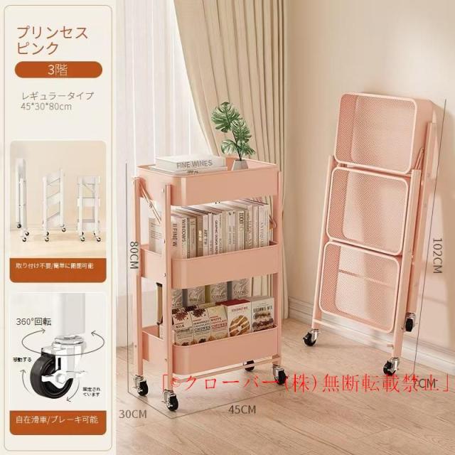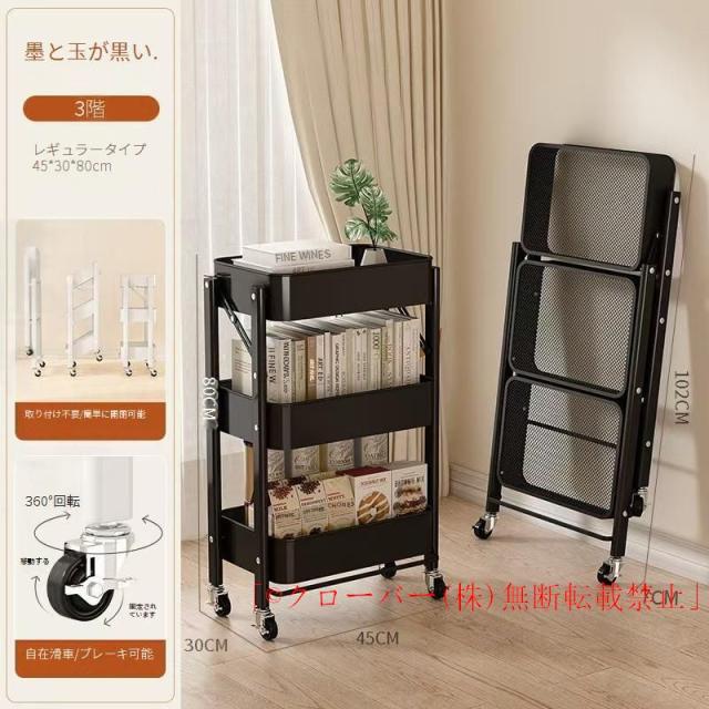 キッチンワゴン キャスター付き 折りたたみ 3段 収納 スリム 組み立て不要 クローバー株式会社 フォールディング マットカラー キッチン ラック トロリー 棚