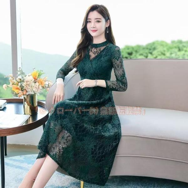 パーティードレス 結婚式 40代 20代 ロング丈 袖あり 長袖 クローバー株式会社 韓国風 大きいサイズ ドレス レースワンピース お呼ばれ 二次会 披露宴 謝恩会 上品 着痩せ