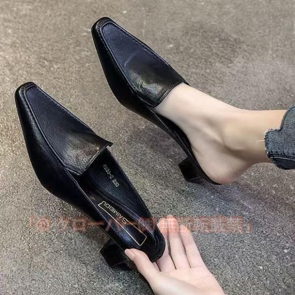 ミュールサンダル レディース ヒール 厚底 痛くない パンプス かかとなし クローバー株式会社 歩きやすい サンダル スクエアトゥ 黒 ローヒール 安定感 レディースミュール