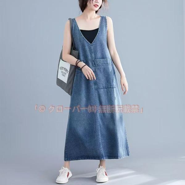デニム サロペットスカート レディース マキシ丈 ジャンパースカート デニム 40代 クローバー株式会社 50代 60代 デニムワンピース オールインワン デニム ロング丈 体型カバー