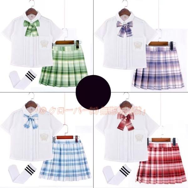 子供JK制服トップス+スカートセットアップ30色セーラー服子供学院風チェック柄スカート幼稚園演出服110cm-170cm半袖団体服 クローバー株式会社