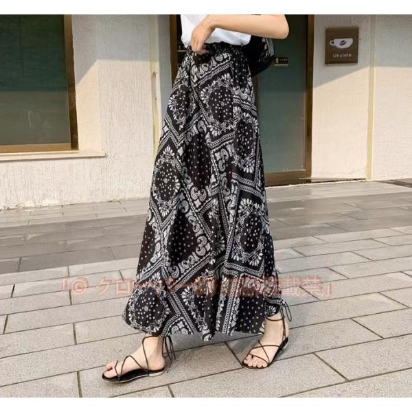 ペイズリー柄 プリントスカート パネル柄 ロングスカートマキシスカート フレアスカート Aライン 体型カバー 夏 涼しい