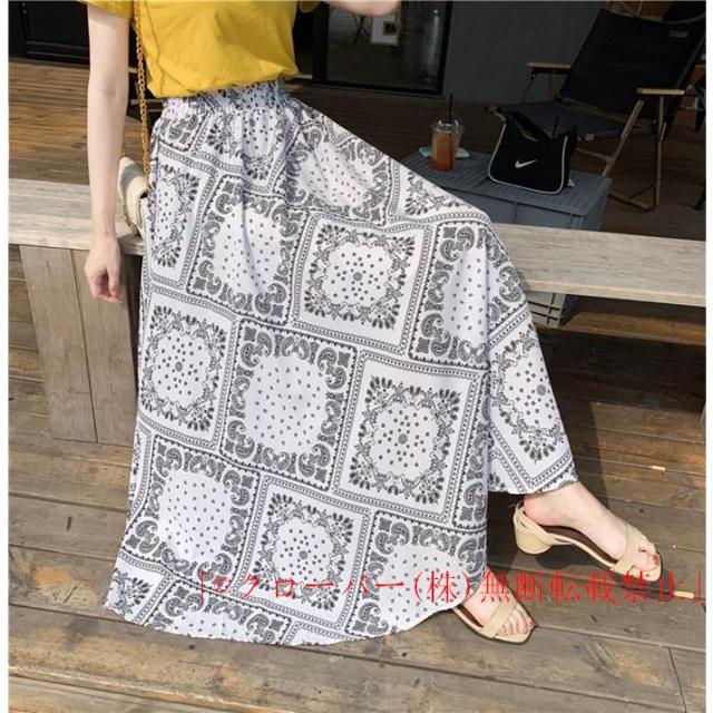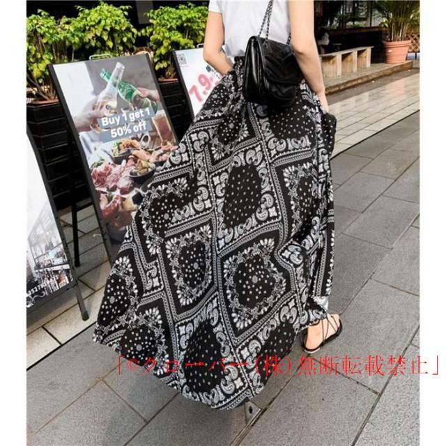 ペイズリー柄 プリントスカート パネル柄 ロングスカートマキシスカート フレアスカート Aライン 体型カバー クローバー株式会社 夏 涼しい