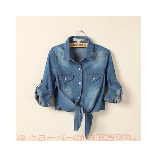 デニム羽織デニムカーディガン半袖ショート丈アウター春夏秋レディースブラウス森ガール五分袖Gジャン中袖ボレロシャツ前縛り肩掛け前結び全店二点 クローバー株式会社
