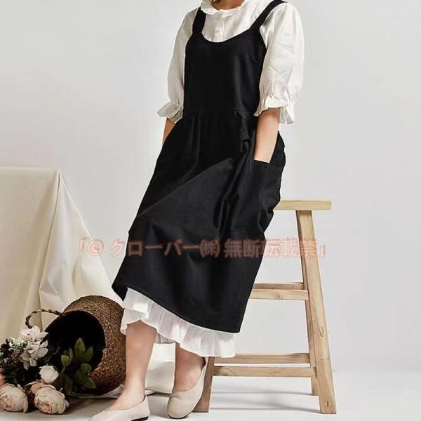 エプロン保育士おしゃれワンピース大きいサイズドレスかぶる女の子ロング北欧制服ロング無地かわいいレディースカフェ クローバー株式会社