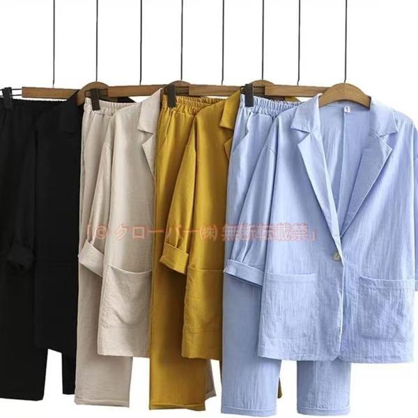 セットアップ 2点セット パンツスーツ レディース スーツ 上下セット フォーマル クローバー株式会社 ワイドパンツ リネン 綿麻 パンツドレス 長袖 エレガント 通勤 OL