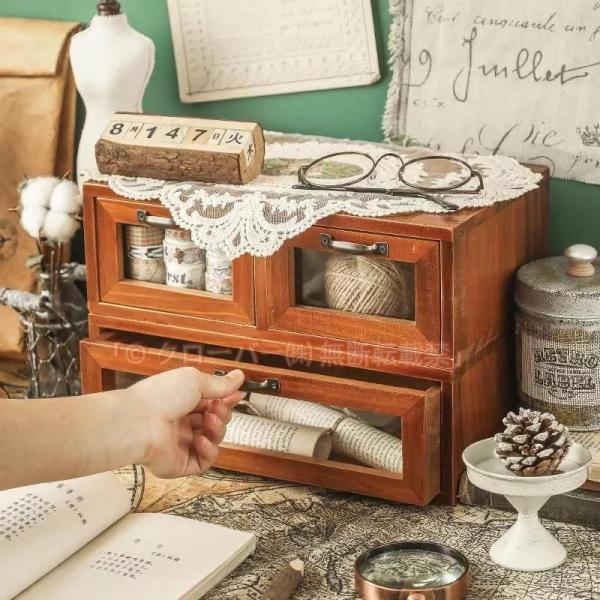 ミニチェスト 引き出し収納 木製 卓上 アンティークウッド アンティーク調 小物入れ 一段収納引き出し 重ね可 おしゃれ クラシック 卓上収納 机上 ガラス