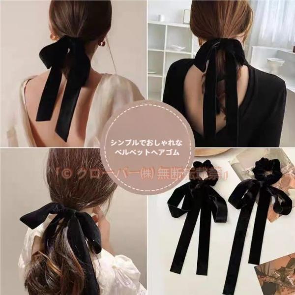 【自由に選べる2枚セット】 リボン ヘアゴム ベロア ベロアリボン シュシュ 黒 クローバー株式会社 ベルベット 大人 バレッタ ロングリボン リボン付き りぼん ブラッ