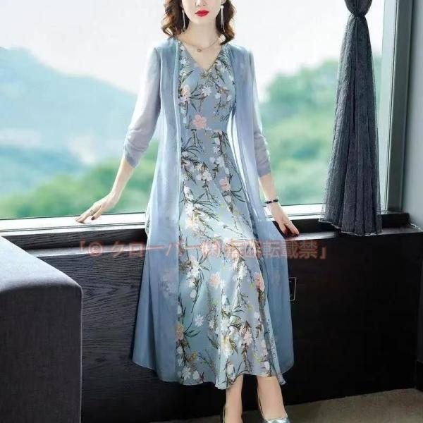 顔合わせ 母親 服装 50代 春 夏 パーティドレス クローバー株式会社 セットアップ アンサンブル 長袖 カーディガン 着痩せ 体型カバー ロング フォーマルワンピース 60代 70代 40代