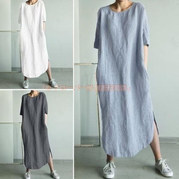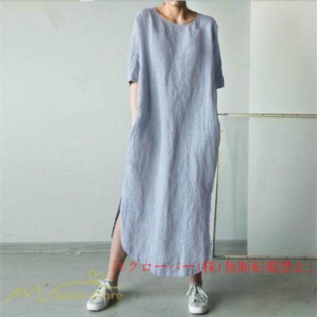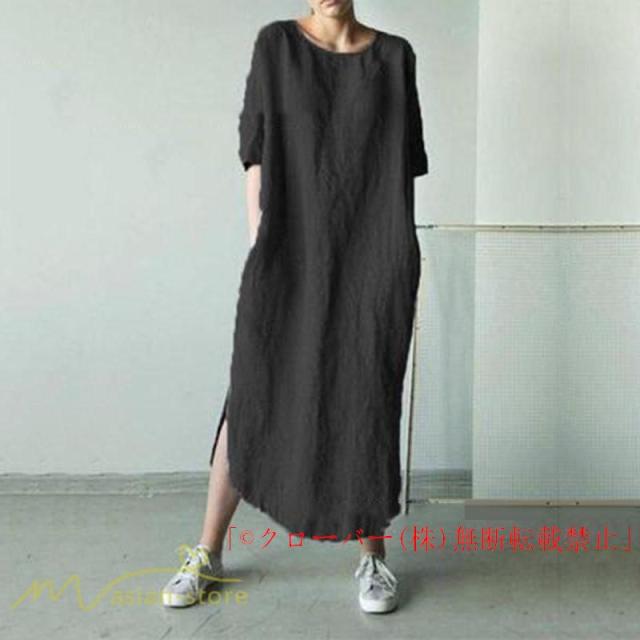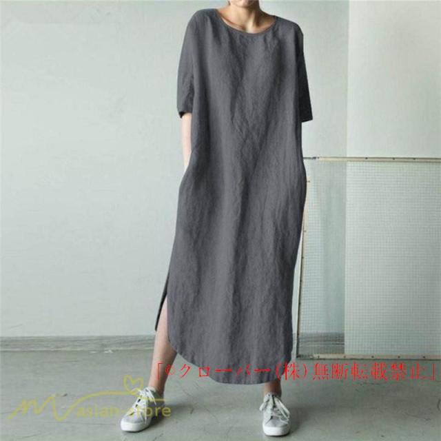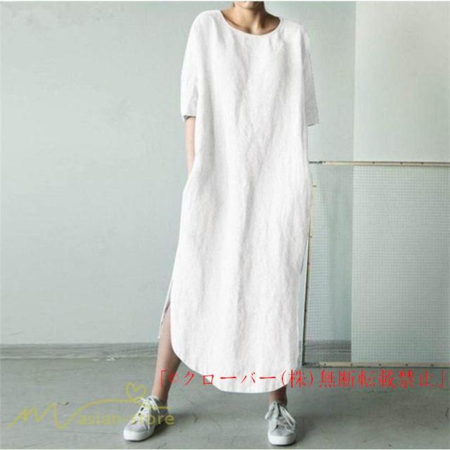ワンピース レディース 無地 ゆったり 半袖 ゆるワンピース 大きいサイズ クローバー株式会社 5XL ゆったり 30代 40代 体型カバー かわいい 裾口スリット
