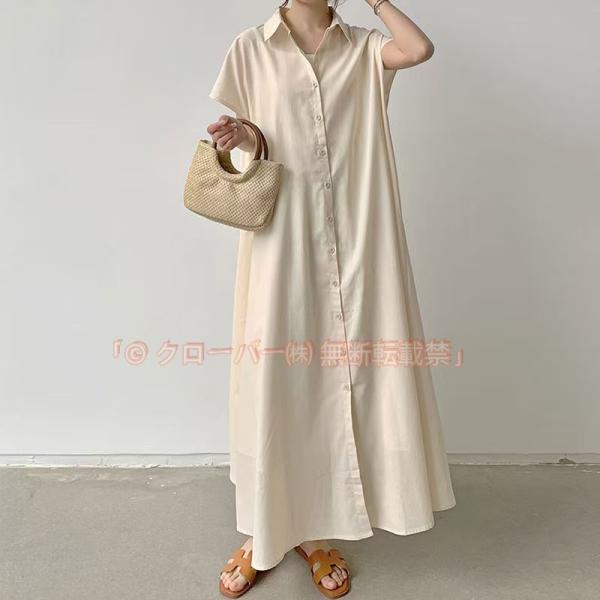 ワンピース 半袖 シャツワンピース レディース 前開き 半袖ワンピース カジュアル クローバー株式会社 ナチュラル ロングワンピース ロング シンプル ゆったり