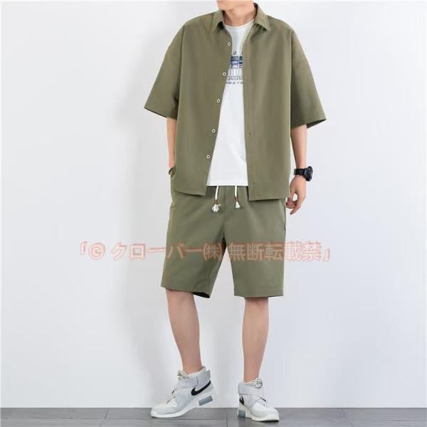 セットアップ メンズ 夏 半袖 上下セット 短パン シャツ クローバー株式会社 無地 カジュアル ホームウエア 涼しい 2点セット 父の日 かっこいい 海辺 花火大会夏