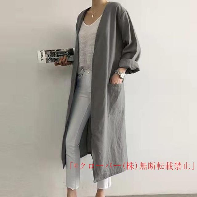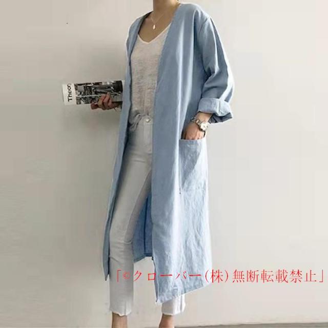 シャツワンピース レディース 春夏 長袖 カーディガン 羽織り ロング クローバー株式会社 ノーカラー ロングシャツ ロングワンピース ゆったり 大きいサイズ きれいめ