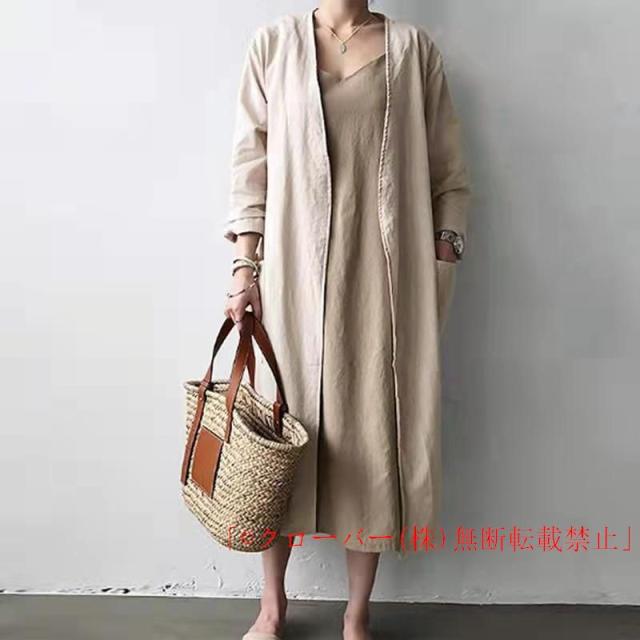 シャツワンピース レディース 春夏 長袖 カーディガン 羽織り ロング ノーカラー ロングシャツ ロングワンピース ゆったり 大きいサイズ きれいめ ふんわり