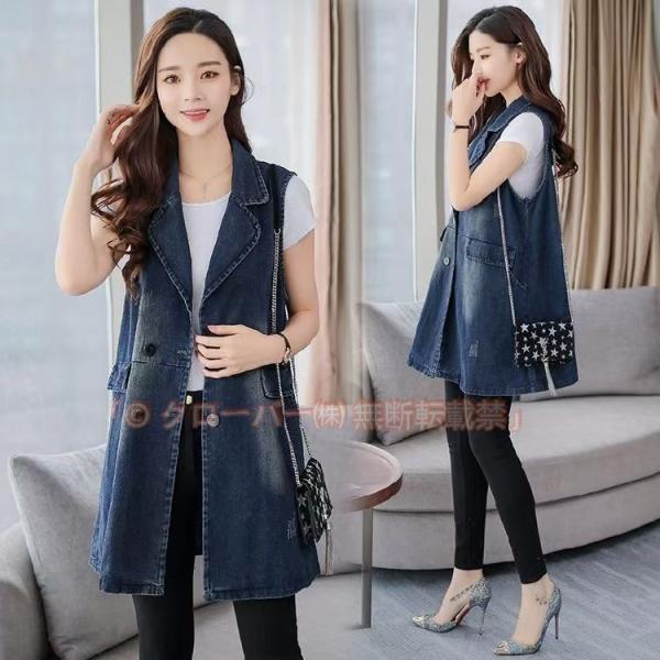 デニムベスト ジレ レディース ライトアウター ベスト デニム ノースリーブ クローバー株式会社 ロングベスト アウター トップス オシャレ デニムジャケット Gジャン ゆったり