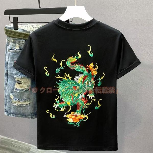 半袖Tシャツ 和柄刺繍 メンズ 刺繍 圖騰 麒麟 白Tシャツ クローバー株式会社 黒Tシャツ 薄手 メンズ特攻服 白 Tシャツ リゾート サマー カッコいい
