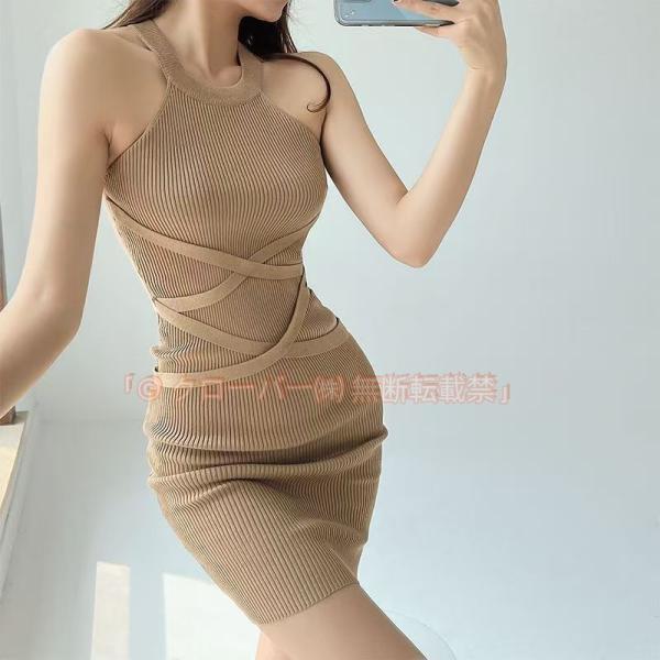 黒 ニットワンピース ホルターネック ワンピース ニットワンピ タイト 着痩せ クローバー株式会社 20代 30代 無地 キャバワンピース ニット