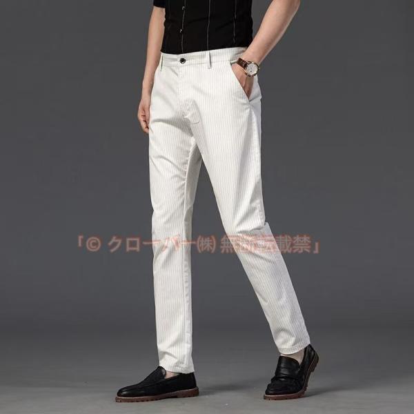 スラックス メンズ スリム ノータック ストライプパンツ ロングパンツ 春夏秋 クローバー株式会社 洗える パンツ ビジネス ビジカジ カジュアル お洒落 ストレッチ 細身 美脚