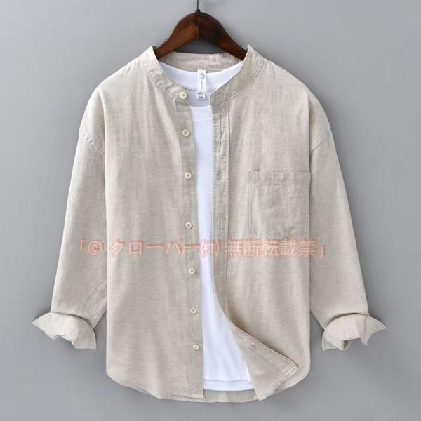 綿麻シャツ リネン シャツ メンズ カジュアルシャツ 綿麻 麻シャツ クローバー株式会社 リネンシャツ 長袖シャツ ビジネス カジュアル 2タイプ バンドカラーシャツ 折襟 シャツ ブラ