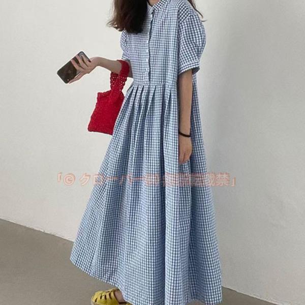 ロングワンピース チェック レディース ワンピース きれいめ 40代 半袖 クローバー株式会社 ゆったり 体型カバー フレアワンピース 大きいサイズ シャツワンピース 着痩せ