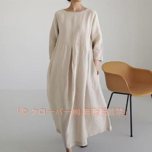 ワンピース ロングワンピース コットンリネン 綿麻 長袖 大きいサイズ カジュアル クローバー株式会社 大人 春 夏 ゆったり 体型カバー おしゃれ マキシ丈 無地