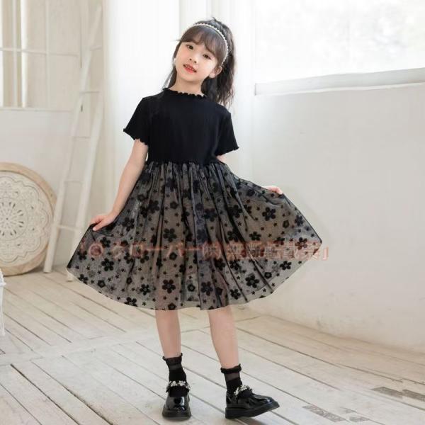 ワンピース 子どもワンピース 花柄 ドレス 卒業式 黒 半袖 クローバー株式会社 フリル シンプル チュールドレス フォーマル 子供服 キッズ チュール キッズワンピース