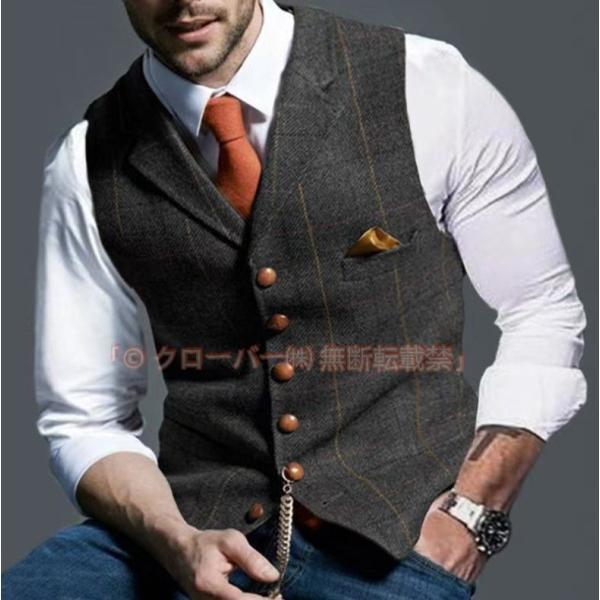 ベスト メンズ ジレベスト チェック スーツベスト チョッキ ビジネス クローバー株式会社 ジレ スーツベスト 秋冬 新作 前開き テーラードベスト 紳士服
