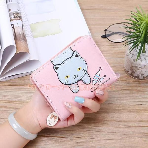ふたつ折り財布 ウォレット 猫ちゃんデザイン フェイクレザー 札入れ カードケース 小銭入れ クローバー株式会社 レディース