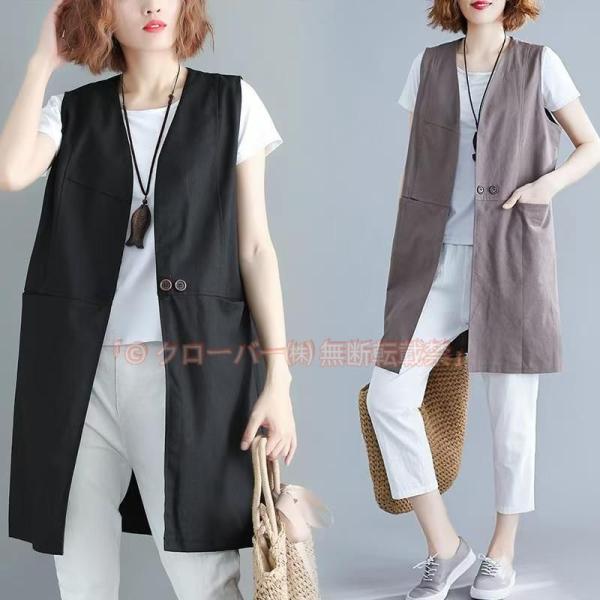 ジレ レディース 春夏 ス ロング丈 ロングジレ ロング クローバー株式会社 アウター サマージャケット ノースリーブ 羽織り オフィス カジュア