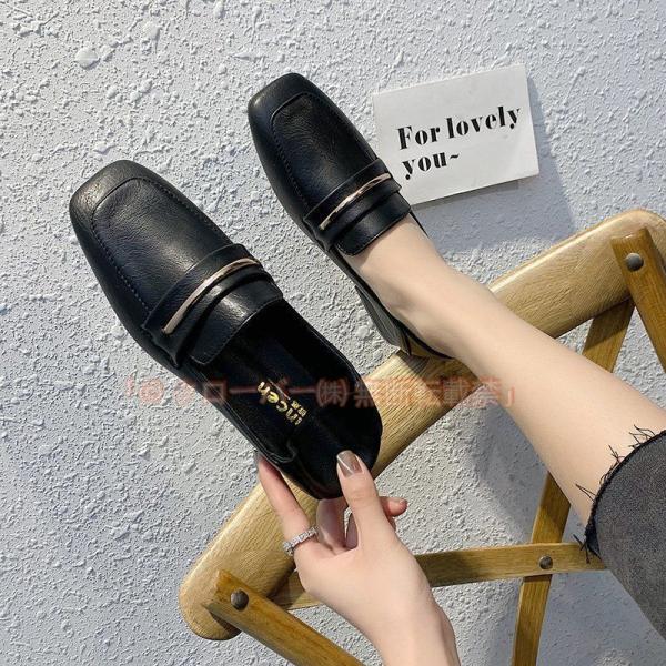 パンプス シンプル ベルト スクエアトゥ ローファー レディース 柔らか クローバー株式会社 カジュアル 3.5cmローヒール クッション 低反発 スリッポン かかとが踏める 履き心地