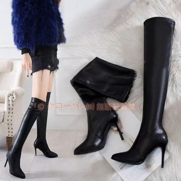 ストレッチニーハイブーツロングブーツ美脚ピンヒールハイヒール疲れない裏起毛ブーツロングブーツレディース防寒細見せ クローバー株式会社