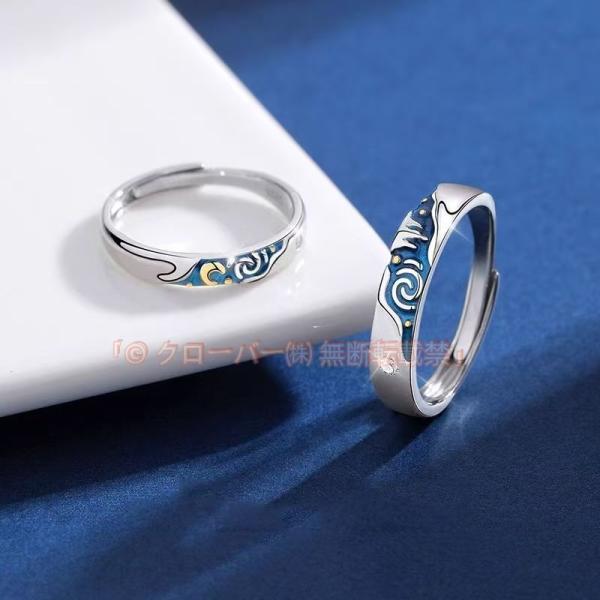 指輪 星空 月 レディース メンズ ペアリング ウエーブ クローバー株式会社 サイズフリー シルバー925 プラチナ仕上げ 人気 結婚指輪 格安 母の日ギフト