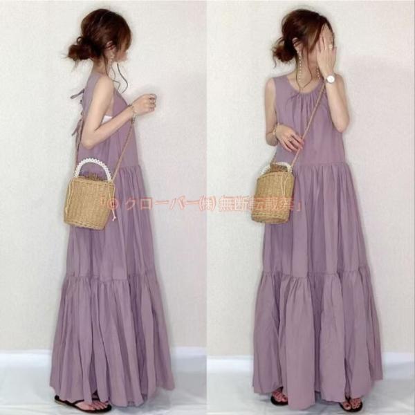 ワンピース レディース キレイめ マキシワンピース 春夏 ノースリープワンピース 韓国風 クローバー株式会社 ブラック パープル